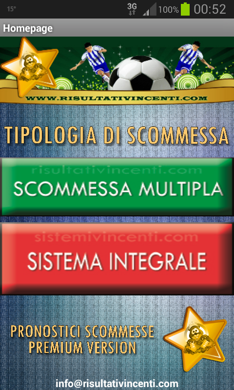 Con questa applicazione avrai a disposizione scommesse e sistemi integrali dei campionati citati sopra pronti per essere giocati!