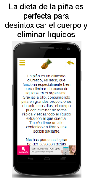 Con esta app GRATIS tendrás la mejor dieta para adelgazar rápido. Recupera tu peso ideal en pocos días con la dieta piña expres. Si te gusta esta aplicación dejanos una valoración de 5 estrellas.