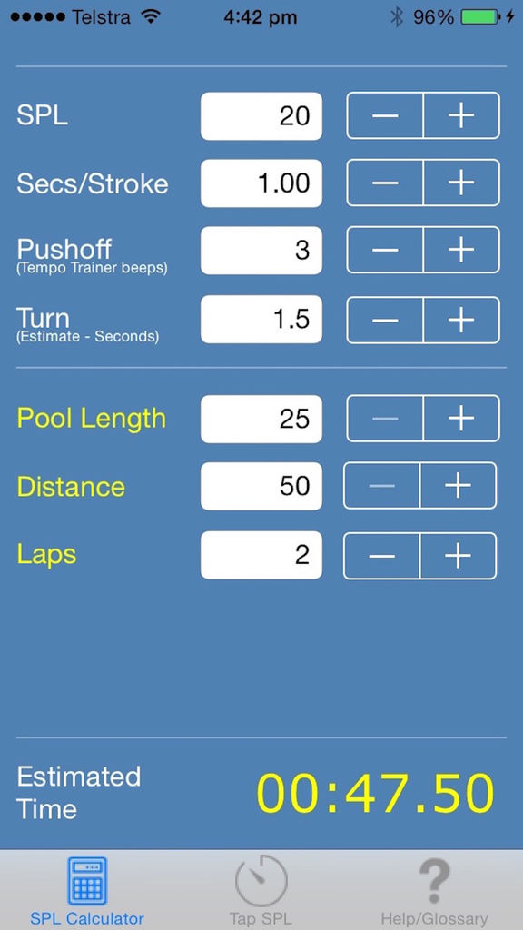 This application can be used by swimmers to quickly work out how different stroke rates and counts will effect the (estimated) time required to swim a given distance.