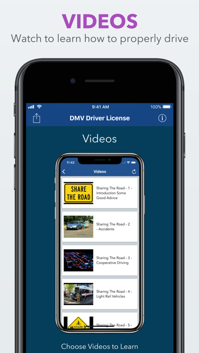The Best Complete Drivers Education App for Driver License Permit Test with videos and official tutorial handbooks.