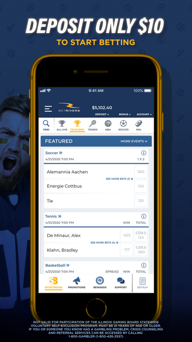 Download BetRivers today! BetRivers is licensed by the state of Illinois. We believe in responsible gaming, and integrity is our first priority. If you or someone you know has a gambling problem, call 1-800-Gambler. Must be 21+ and present in the state of Illinois. Additional terms and conditions apply.