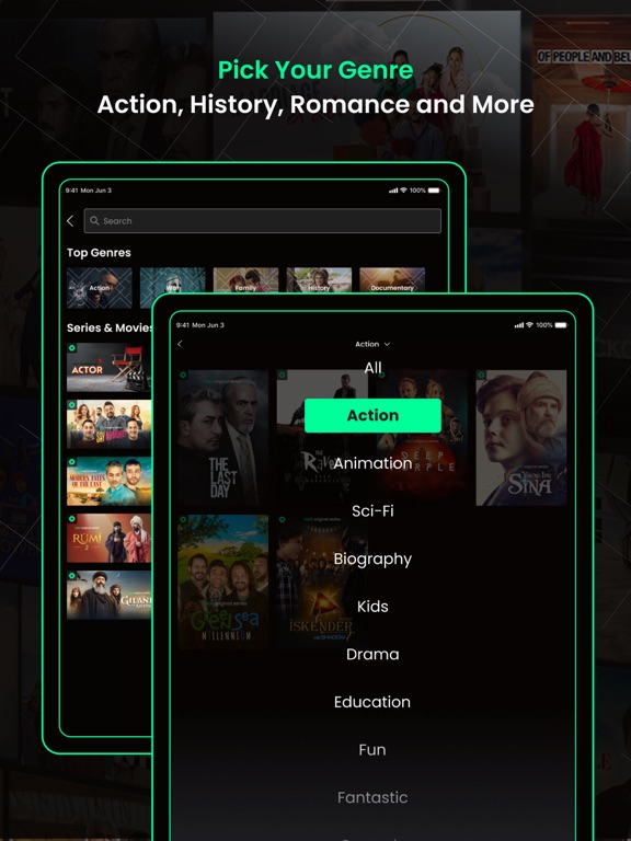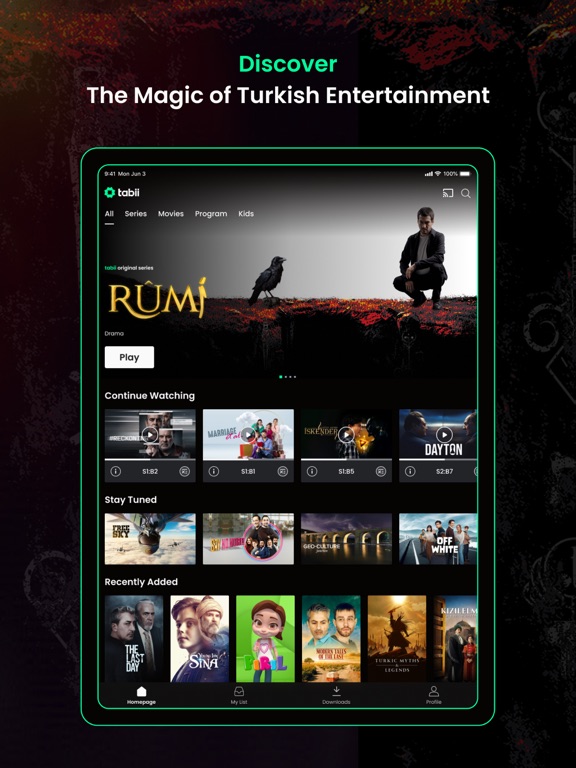 Whether you already can’t get enough of Turkish shows or you’re yet to discover the magic of Turkish entertainment, you will love everything tabii has to offer. Exclusive original series, movies, documentaries, and kids' content handpicked just for you; licensed content and globally loved Turkish series from TRT in various genres including action, history, drama, fantasy, comedy, mystery, and romantic comedy.