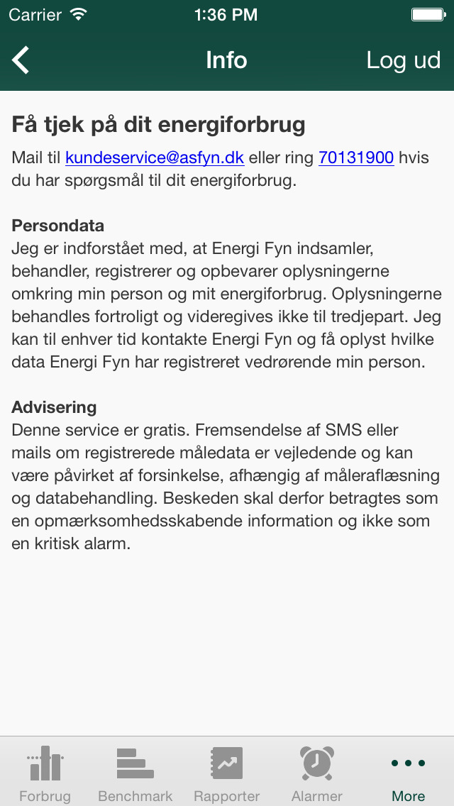 Har du en fjernaflæst elmåler fra Energi Fyn, kan du følge dit energiforbrug via Energi Fyn applikationen på din mobil, og se hvordan det fordeler sig henover døgnet, ugen, kvartalet og året. Du kan også opsætte forbrugsovervågning og blive adviseret, hvis dit forbrug er over eller under en vis grænse. Det giver dig muligheden for at blive mere bevidst om dine vaner og dit forbrug. Ved at ændre dine vaner kan du spare penge på elregningen og samtidig gøre noget godt for miljøet.