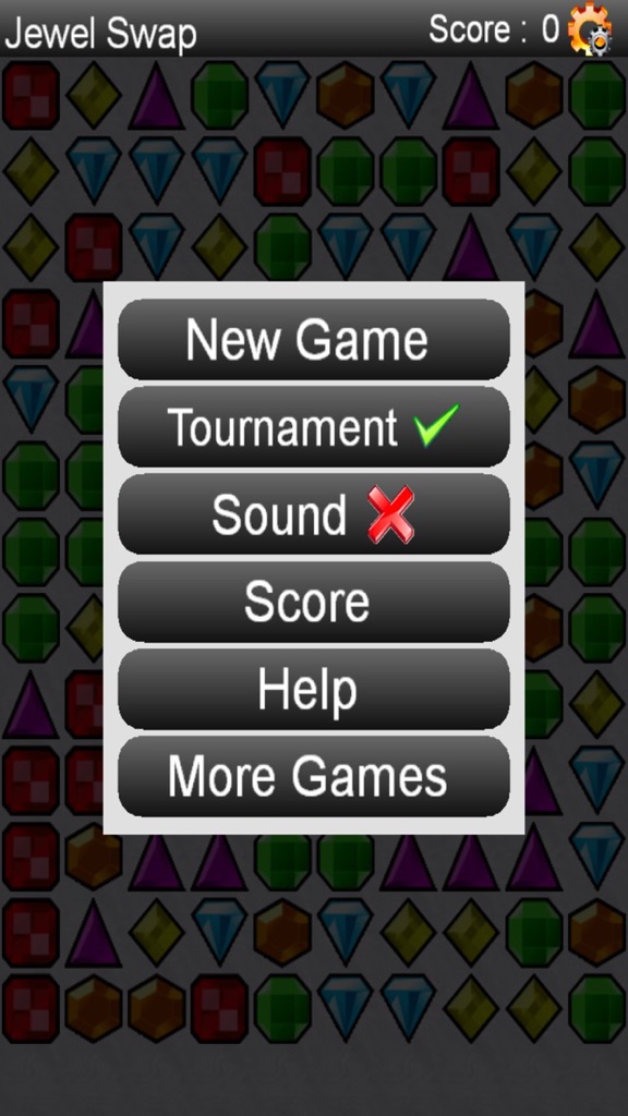 The goal of the game is to collect max score by tapping or swiping adjacent jewels to line up 3 or more of the same kind (vertical or horizontal). These jewels will explode and a new ones will appear. The game will be over when you use up all available combinations on the game field (or in tournament mode when the time is up). Earn additional points for combos and cascades. Use menu (top-right corner) to toggle between infinite and tournament mode, to check score or restart the game.