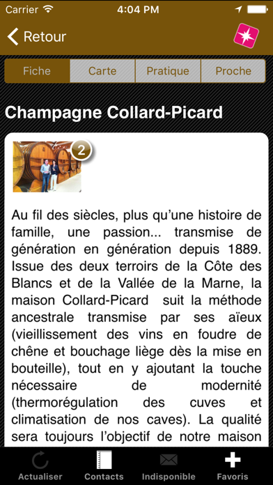 L’utilisateur a la possibilité de contacter par courrier électronique ou par téléphone les responsables des sites présentés, d’enregistrer les sites, évènements ou visites dans ses favoris.