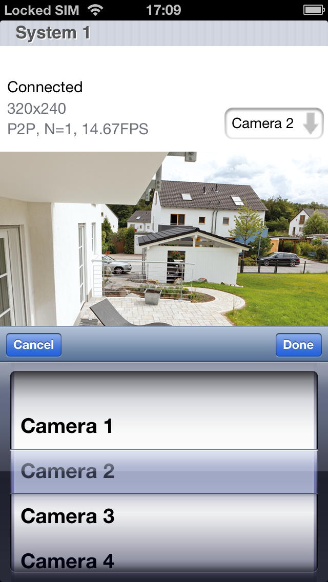 You can choose to access all connected cameras of your TVAV16000 monitor and store snapshots to your iPhone / iPod or iPad. The corresponding image is stored to the picture folder and can be sent out by using MMS or e-mail.