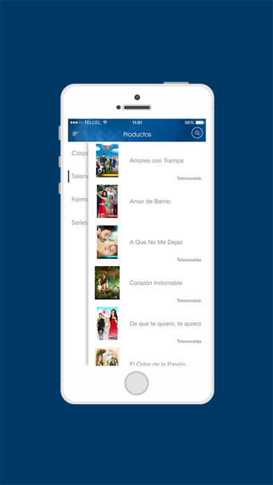 Aplicación con el catálogo de productos de Televisa Internacional en Español.
