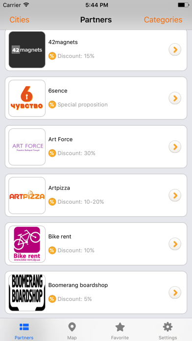 The program includes more than 500 institutions throughout Ukraine. This application was created to display all partners of the program. The product is used to represent such information as location, phone numbers, addresses, institutions and size of discounts.