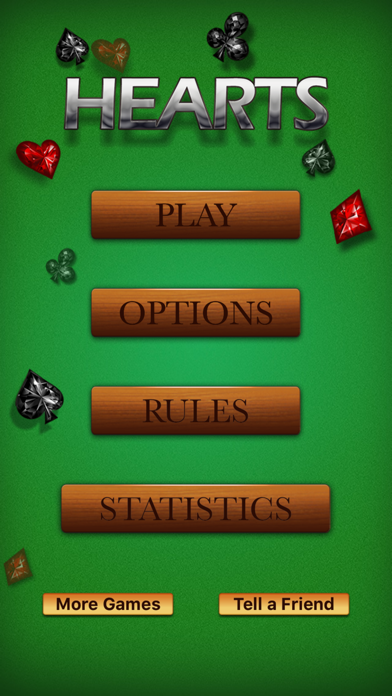 Happy Hearts is played with a single deck of 52 cards. You have three opponents, each player receives 13 cards. The goal is to pass all your hearts to other players and to score as few points as possible.