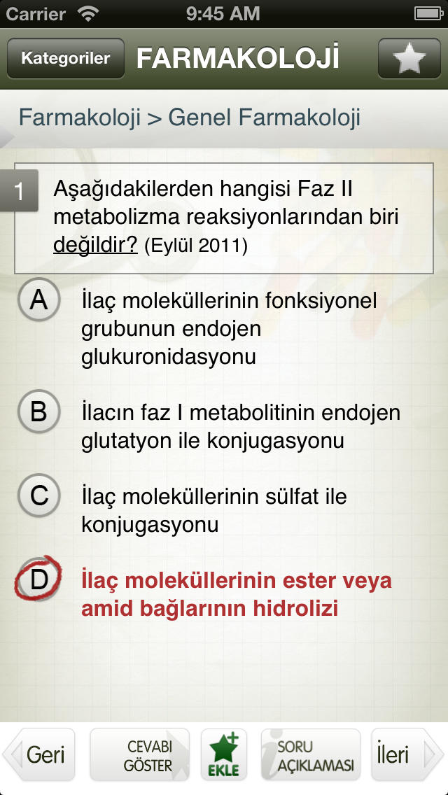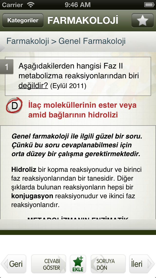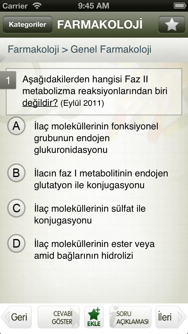Bu uygulama; TUS ve DUS' a hazırlanan hekim ve hekim adayları için hazırlanmıştır. Uygulama, bugüne kadar çıkmış Tüm Farmakoloji sorularını açıklamalı olarak SON SINAVDAN İLK SINAVA doğru olacak şekilde hazırlanmıştır. Branş içi alt başlıklar, istediğiniz konudaki sorulara kolayca ulaşmanızı sağlayacaktır.