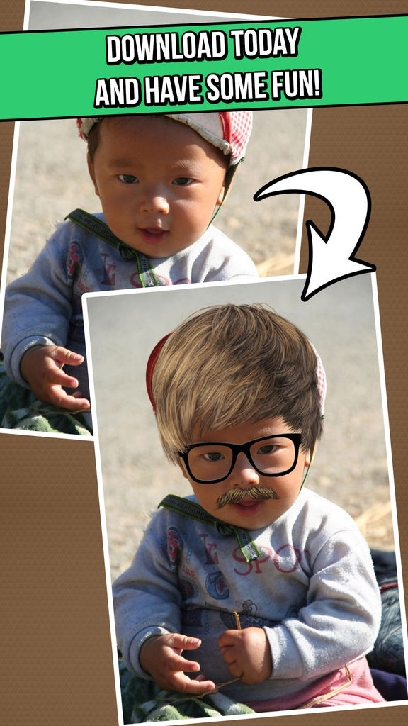 -Also included are different hair styles, beards, glasses, and hats that you can use to add some more fun to your photos