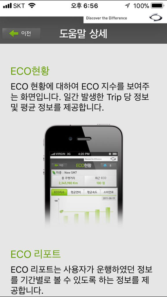 [소개] 차량의 ECO 정보, 소모품 정보 등을 언제 어디서나 SmartPhone을 통해서 확인하세요. [주요기능] 1. 주행거리에 따른 차량 소모품 교환주기 확인 제공 2. 위급상황시 지인들에게...