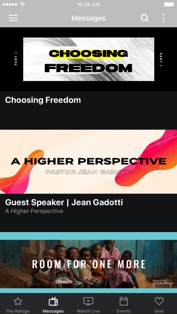 The Refuge mobile application was developed with the Subsplash App Platform.