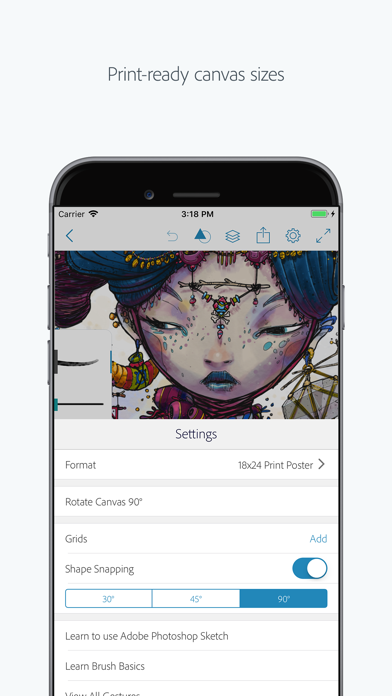 Are you an artist on the go? Adobe Sketch captures your creativity wherever inspiration takes you. We stole the mighty Photoshop brush engine and stuffed that power inside your iPhone and iPad. Pens, pencils, and watercolors feel real, including favorites from the brush master Kyle T. Webster. Create on resizable canvases up to a delightfully printable 8k. Want to take your art further? Send your layered files to Adobe Photoshop CC or Adobe Illustrator CC with a single tap using your Creative Cloud account. Show off your digital drawing process with an automatically created time-lapse video.