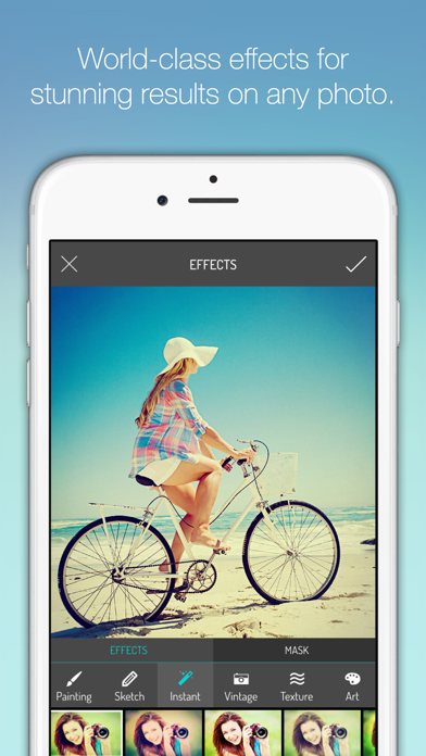 The Mask feature allows you to choose the areas in the photo that the effect will be applied on. Mix & match different effects on the same photo to create a true work of art!