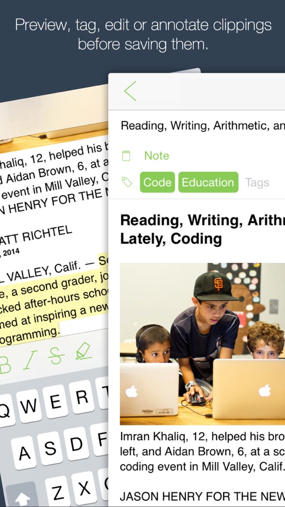 - Annotate and edit clips before sending them to Evernote