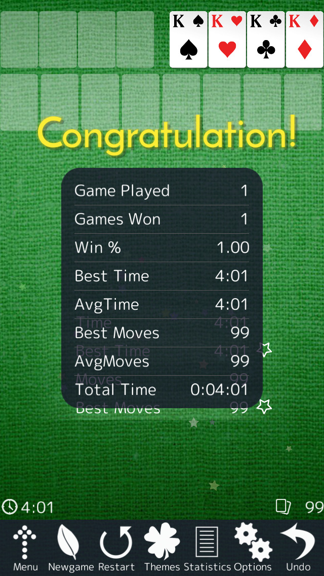 It is famous on Windows Game. There are some functions to play comfortable! Cards can move with one tap. Ideal for little spare time such as a train or waiting!