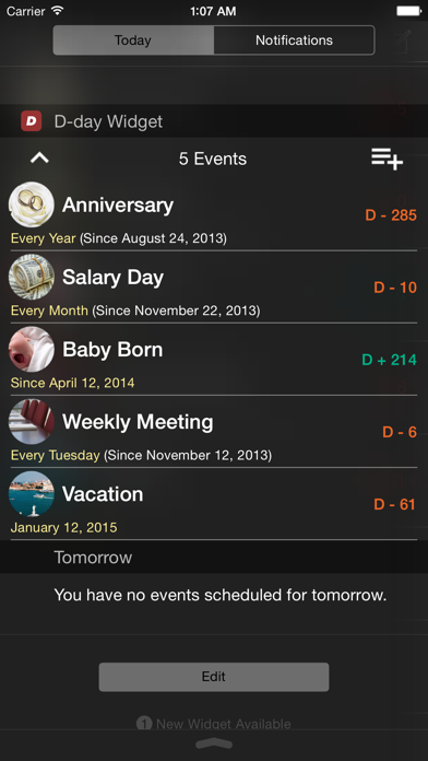 Don't miss your special day with D-day Widget ! Once you add events, you can see the list any time you want ...