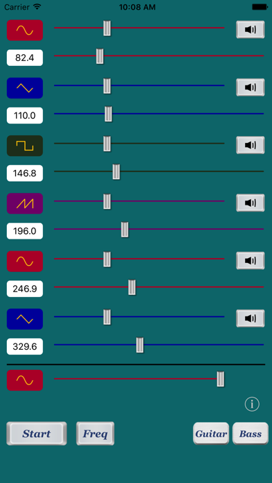 - In the Preset button (Guitar, Bass), it can set the frequency value of Guitar (E A D G B E), 6-string bass (B E A D G C).