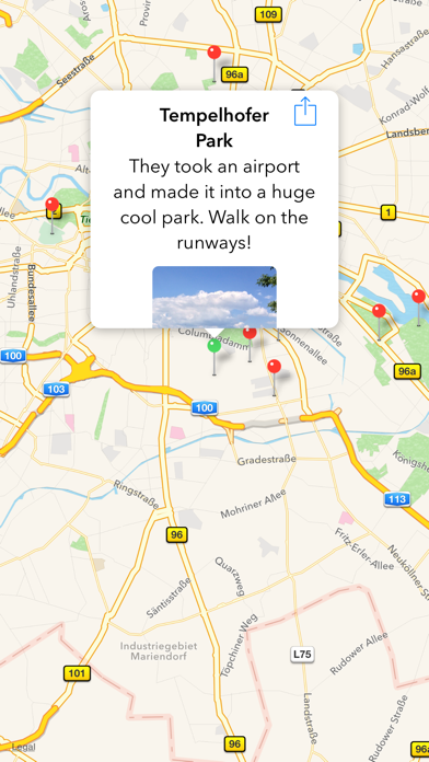 Places helps you build beautiful maps of your favorite cities. It's as simple as adding pins to a map and writing your notes for them. Sharing your maps is as simple as sending your friend a link (your friends don't need to have the app; maps built with Places are beautiful on the web too). It's really useful as a lightweight travel planner/journal, and also great when you have a friend visiting your neighborhood and you want to tell them where to go. It's a small, simple tool and it's completely private and free - no ads, obnoxious Facebook logins, or in-app purchases.