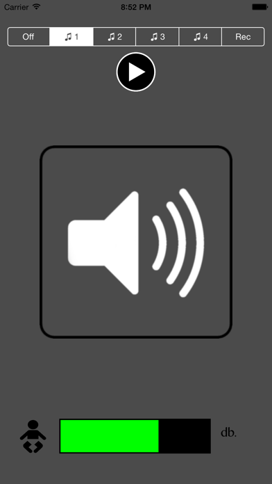 Select between 4 different and famous lullabies, or record your own voice! Remember, your voice is the optimal sound to calm your baby!