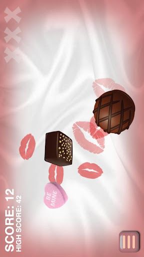 Slash the flying chocolates and listen to the kissing sounds as you try and