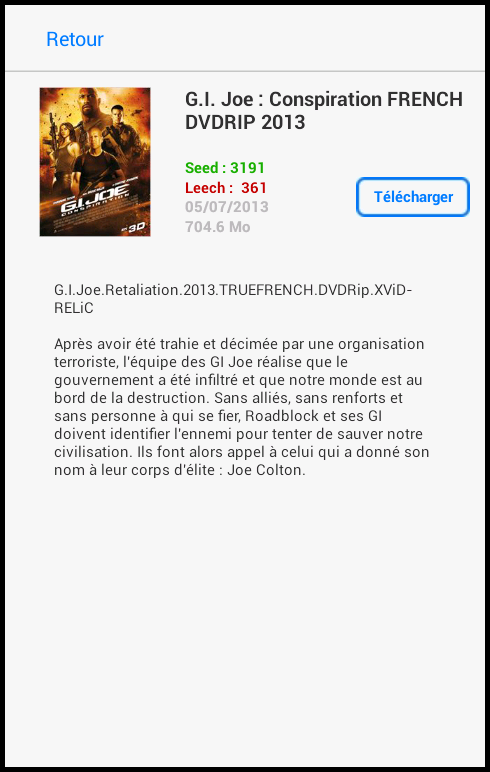 Freebox Torrent allows you to search and send your Freebox V6 torrent files.