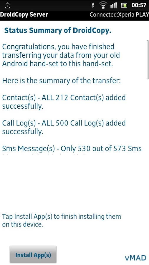 NOTE: We strongly advise you to download the Droid Copy User Guide before using Droid Copy , especially if you are unfamiliar with Bluetooth procedures, i.e. pairing devices with Bluetooth. You can download the User Guide here: [http://www.vmad.com/Droid_Copy_UserGuide.pdf](https://www.google.com/url?q=http://www.vmad.com/Droid_Copy_UserGuide.pdf&sa=D&usg=AFQjCNEFLfLe97DC3dpgaCTpONQ7XDxD4Q)