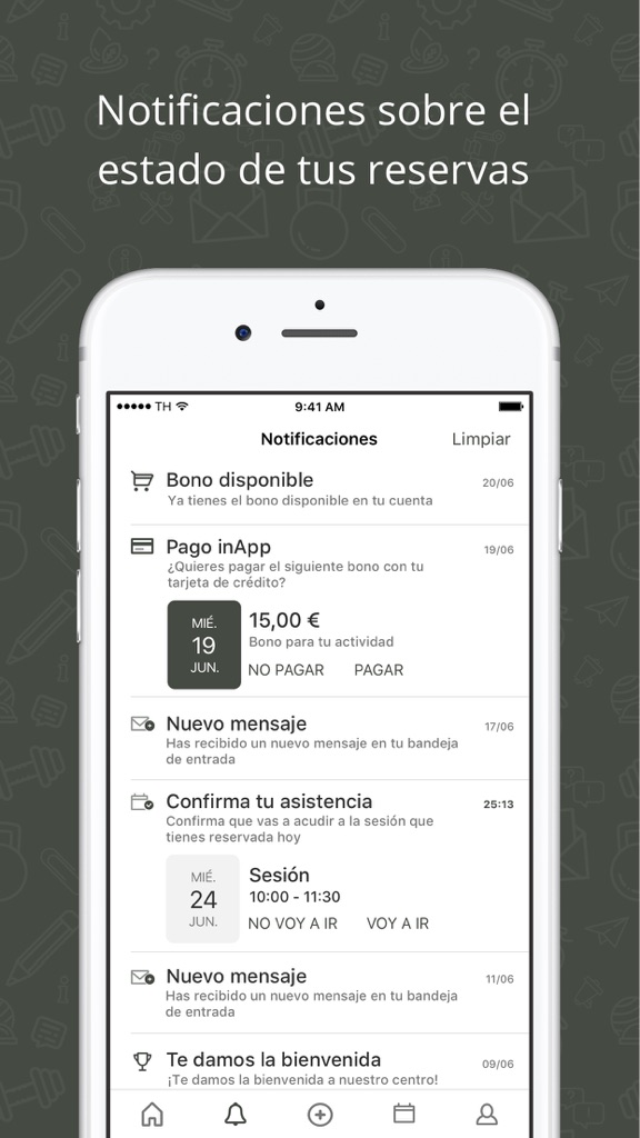 - Recibe notificaciones sobre eventos importantes, recordatorios de reservas o confirmación de asistencia a través de la aplicación.