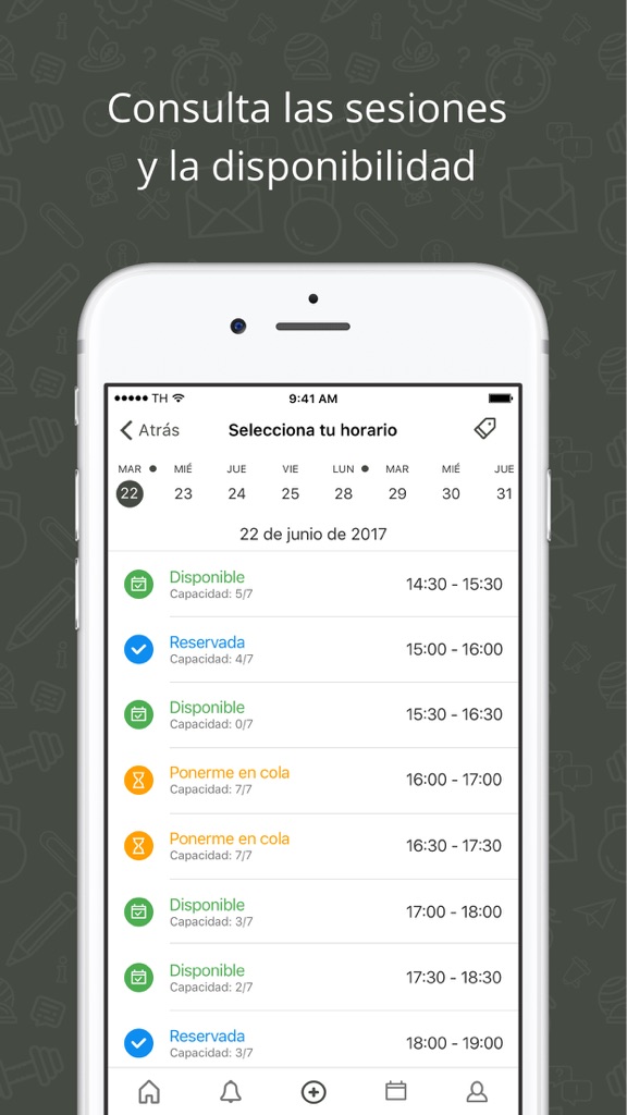 - Consulta las sesiones que ofrece tu centro, así como su disponibilidad.