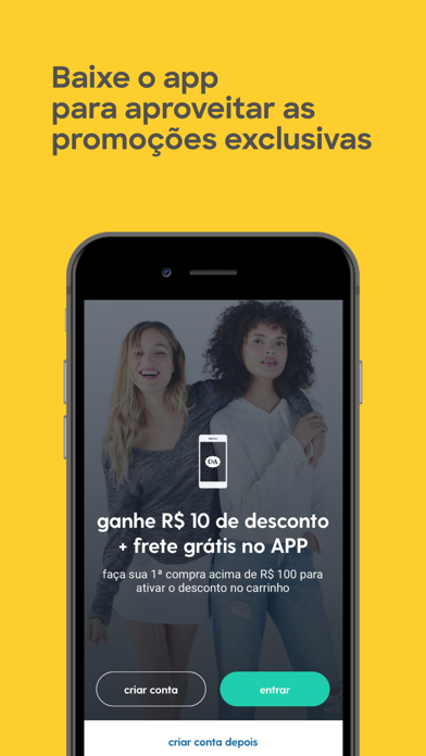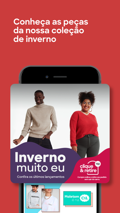 Sua loja de roupas favorita na palma da mão! Não fique de fora de nenhuma novidade e tenha acesso a VANTAGENS, OFERTAS EXCLUSIVAS e a SEGURANÇA que você SÓ ENCONTRA NO APLICATIVO.