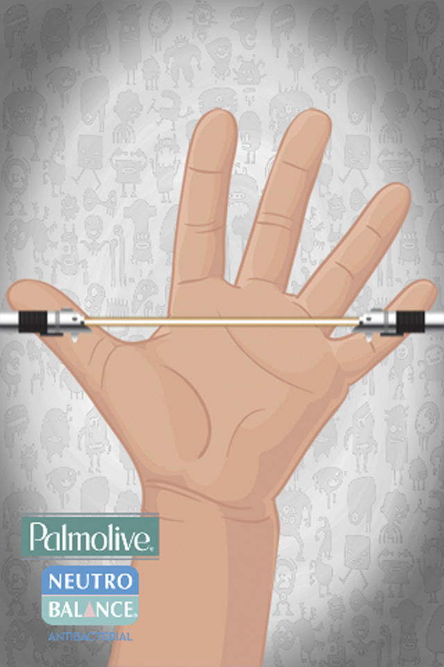 Modalidad “Después del Aseo”: Después del baño o lavado de manos, la mamá seleccionará la opción de “Manos” o “Cuerpo” respectivamente y pasará el dispositivo sobre la piel del niño simulando ser un escaner, quien verá que ya no hay gérmenes ni bacterias.