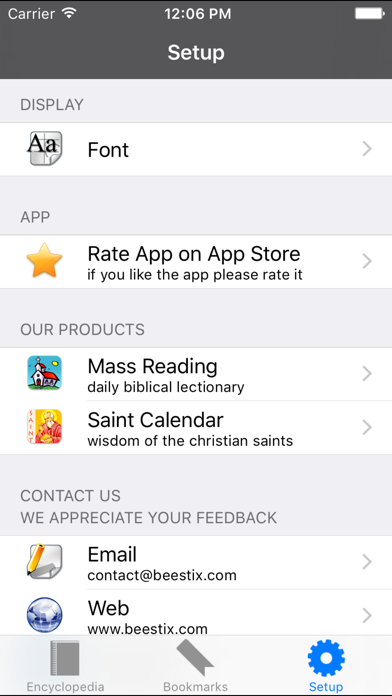 Unlike the ordinary book, you can use this application to comment on every article and present your thoughts to the other Catholic Encyclopedia users. Furthermore it is possible to share your favorite readings with your friends via Facebook or Email.