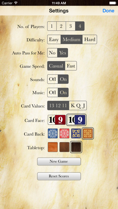Build card piles from 13 down to 1, with alternating colors. It's like the solitaire game Klondike, but in a circle. You play against 3 robot players, and the first one to empty his hand wins the game!