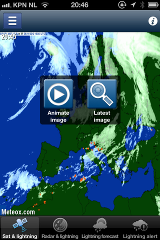 The lightning alert app is a full featured lightning app. It displays both satellite and rain data in realtime...