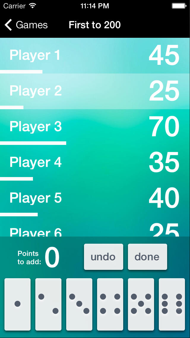 Gameplay is fast and simple. The simple 1-6 keypad makes counting for dominoes and dice games a breeze, while still be able to get to any number you want for any game very quickly. Get your points to the right spot, hit "done", and it will add it to the selected players total. FourScore also includes an undo button which allows you to back up to any prior point in a game.