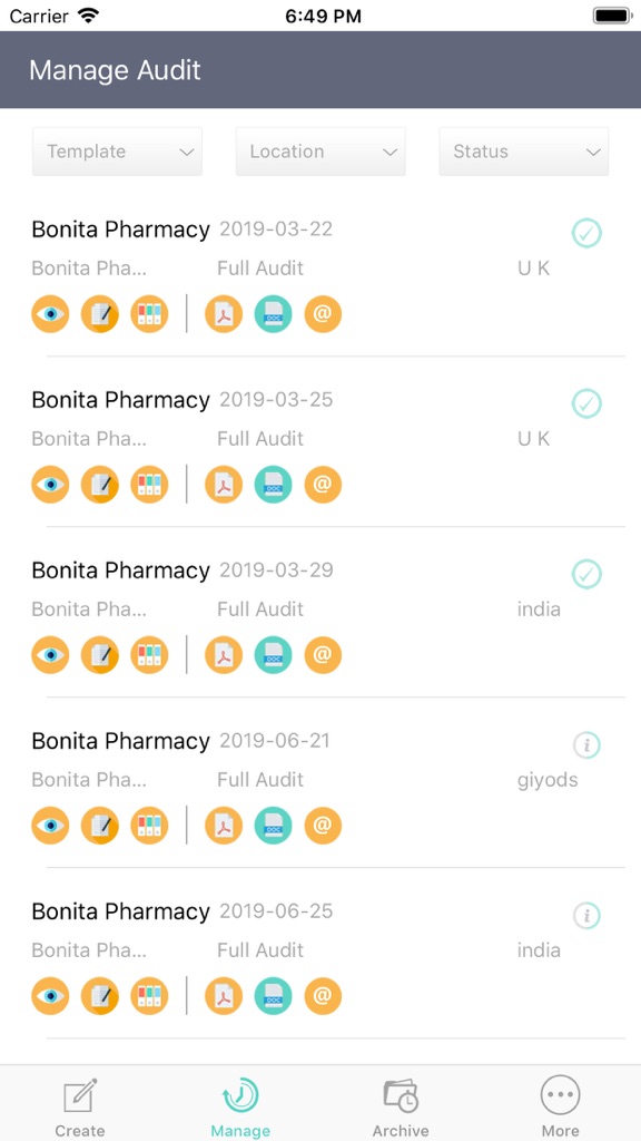 -Audits can be saved in multiple sessions and hence give flexibility to complete audit over period of time without losing any data