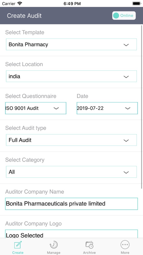 ISO audit manager on cloud is designed for ISO Auditors. The app is useful for internal audit as well as client company audit.