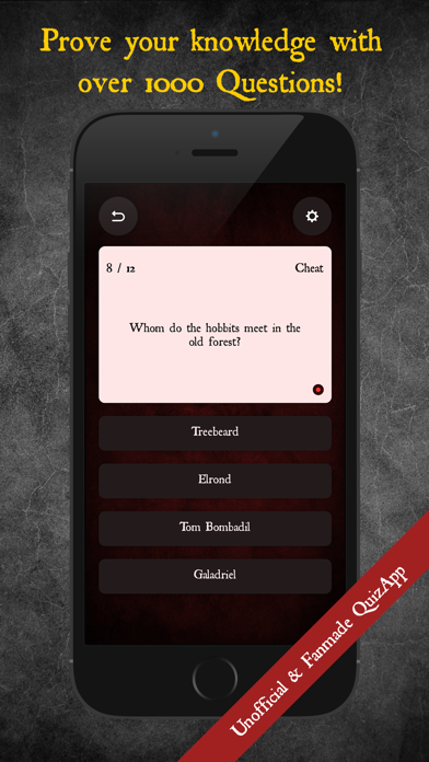 Answer more than 1000 questions on 12 different levels of difficulty. It begins with questions about Great Ring War and the journey to the Lonely Mountain. Later on, there are questions more difficult and advanced for the real fans amongst you. If you ever need assistance, you can rely on the three jokers. Play for the free peoples or fight in the armies of Sauron. Answer questions correctly and unlock over 25 achievements.