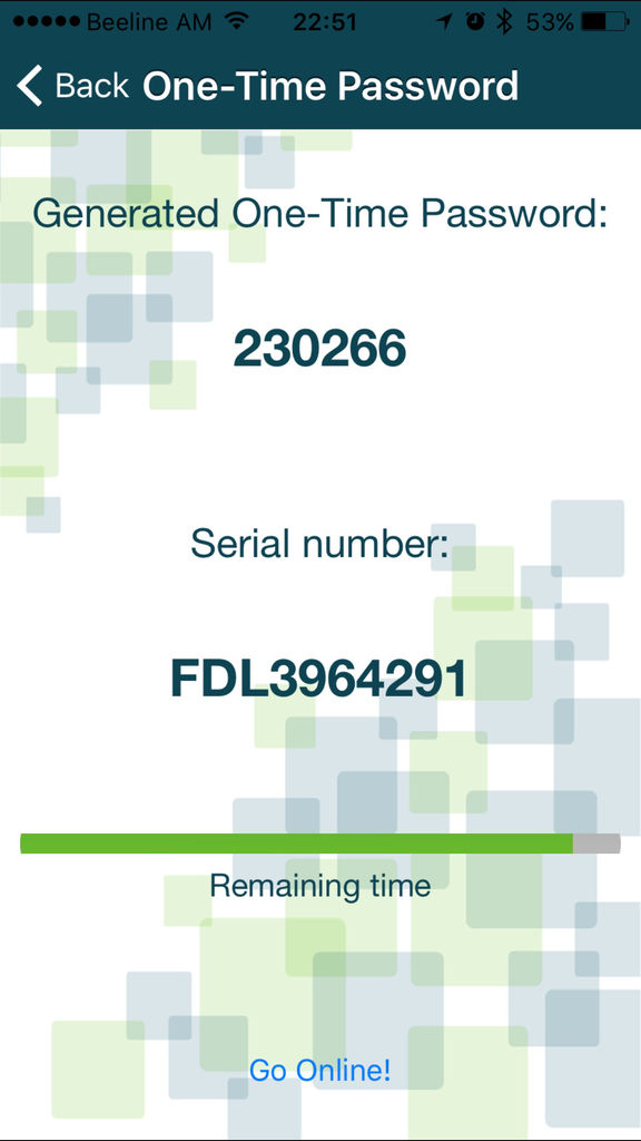 AmeriaToken is a secure mobile application that provides Ameriabank customers a one-time password authenticators for Ameriabank Online Banking transactions, eliminating the need to carry a hardware token. AmeriaToken increases your mobility and comfort of banking 24/7. Online banking provides you two-layer security of your identity: the first factor is the username/password for online.ameriabank.am; the second one is the one-time password (OTP) that is generated through AmeriaToken app that can be used just once and is valid for a limited time specified on the screen.
