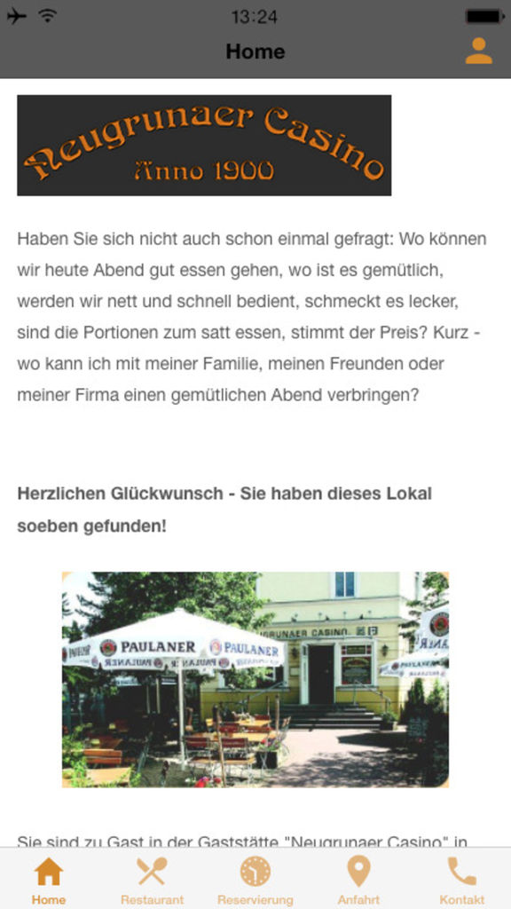 Mit insgesamt 140 Plätzen in 4 separaten Räumen und noch einmal 100 Plätzen im Biergarten ist das Neugrunaer Casino wahrlich kein kleines Lokal, obwohl es trotz dieser Größe beim ersten Betreten den Charme der gemütlichen Eckkneipe von Anno Dazumal ausstrahlt. Ein Blick in die weiteren Räumlichkeiten offenbart aber, dass hier auch in ganz festlichem Rahmen gefeiert werden kann.
