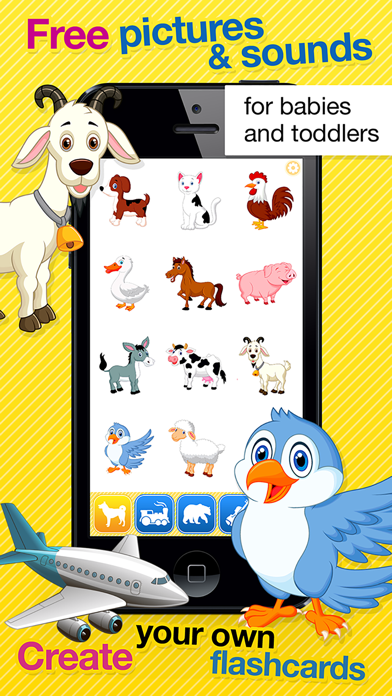 • 120 interactive flashcards in 2 categories: The World of Animals and Vehicles.