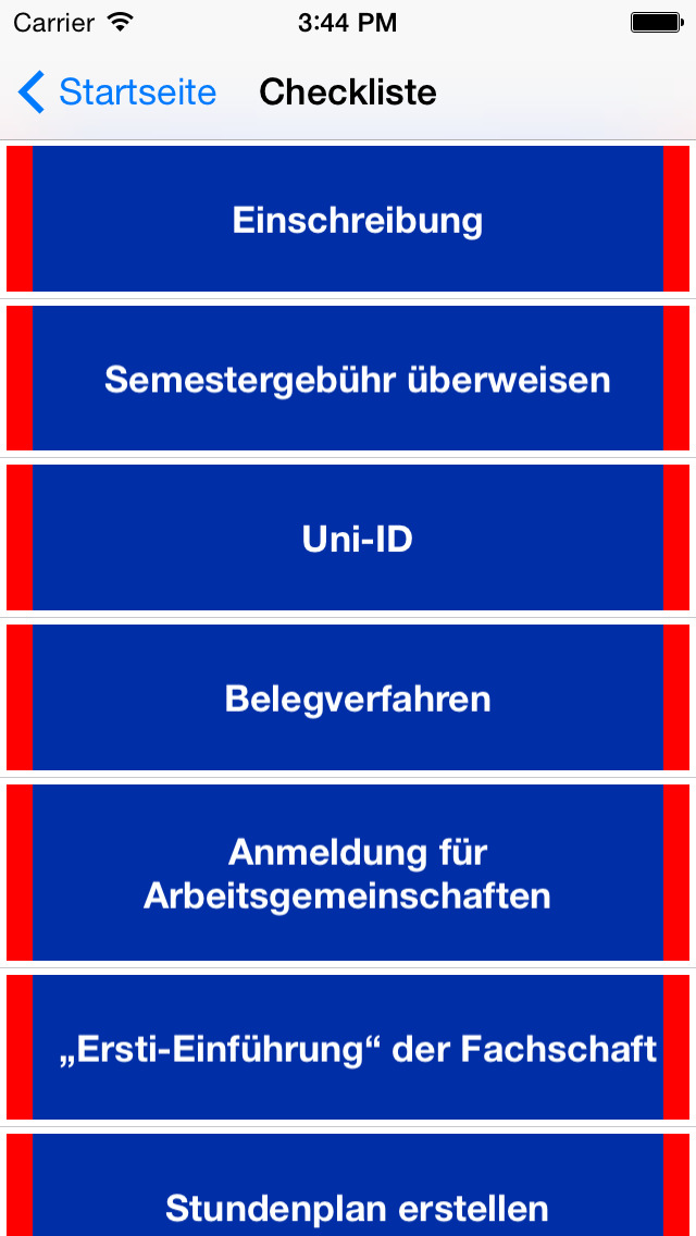Eine Reihe von Funktionen, wie Lagepläne und Checkliste, sind speziell für Erstsemester gedacht. Sie helfen bei der Orientierung und vermitteln die wichtigsten Ersten Schritte im Jura-Studium.