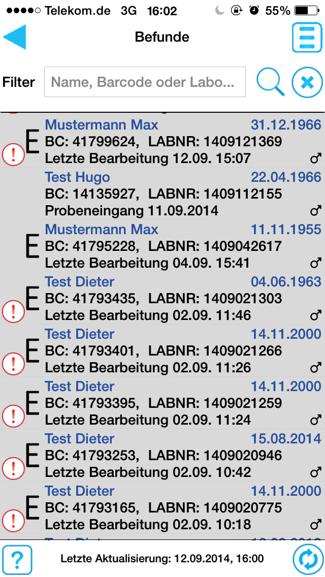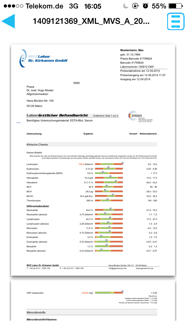 Diese App bietet mobilen Zugriff auf die Laborbefunde Ihrer Patienten – jederzeit und an jedem Ort. Sowohl Teil- als auch Endbefunde (pdf-Ansicht) können live eingesehen werden. Darüber hinaus bietet diese App eine Push-Funktion für pathologische und Eilt-Befunde.