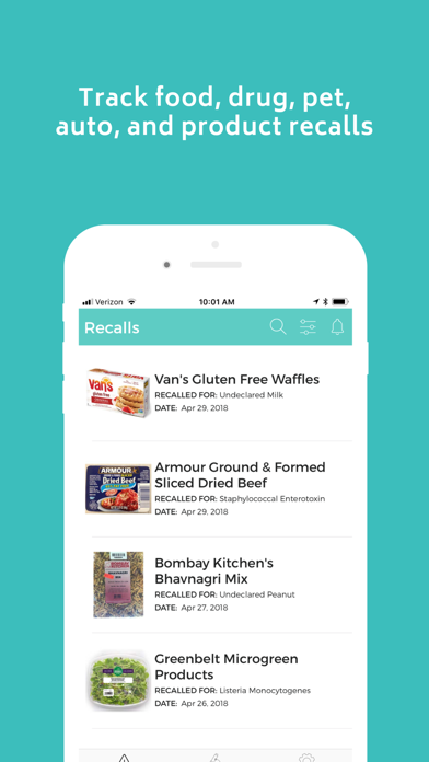 · Track and share food, auto, pet, baby, and pharma recalls