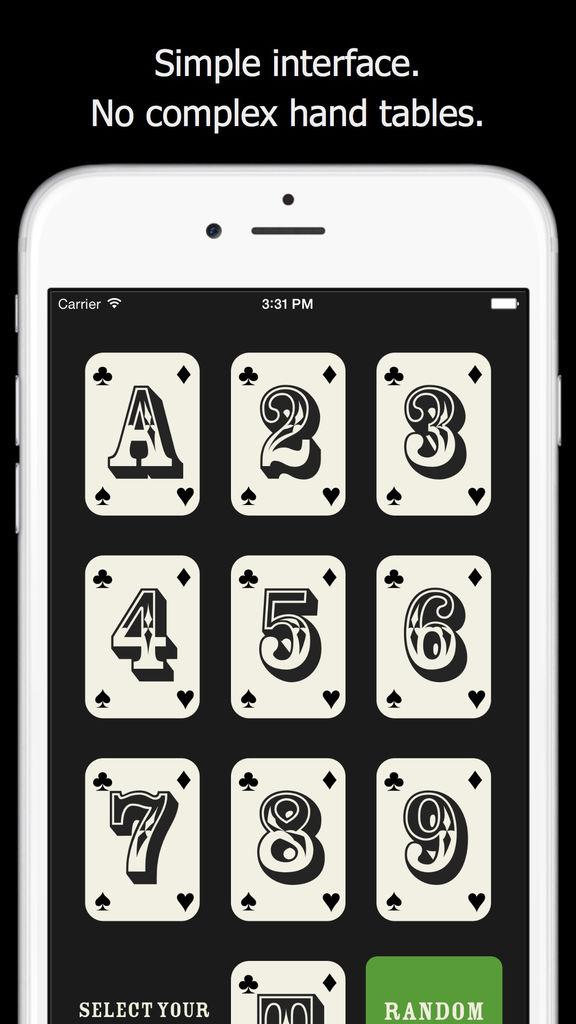 Know what to do with any hand in two taps. Select the hand you've been dealt and the best strategy is immediately available.