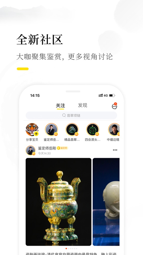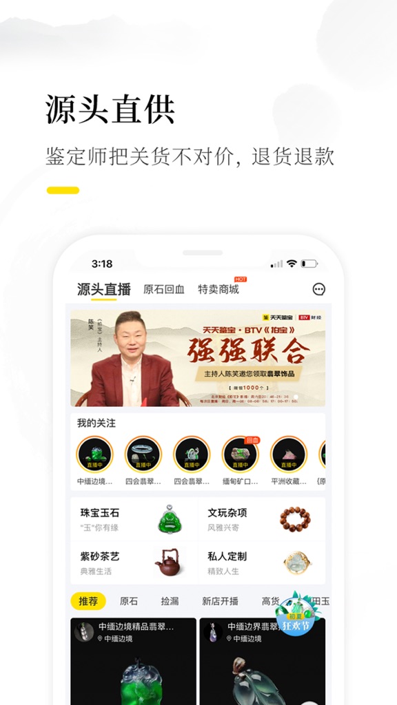 tag:天天鉴宝致力于为大家提供珠宝玉石、文玩把件等物品交流社区,集鉴定师、商家、爱好者与发烧友共聚一堂。让你的玉石文玩等宝贝与大咖无隔阂交流和展示。打造鉴定新概念,与专业鉴定师在线免费面对面交流鉴定,全方位数字化的鉴定评估,像手机跑分一样直观。我们还有源头直供的直播卖场。 【我们的
